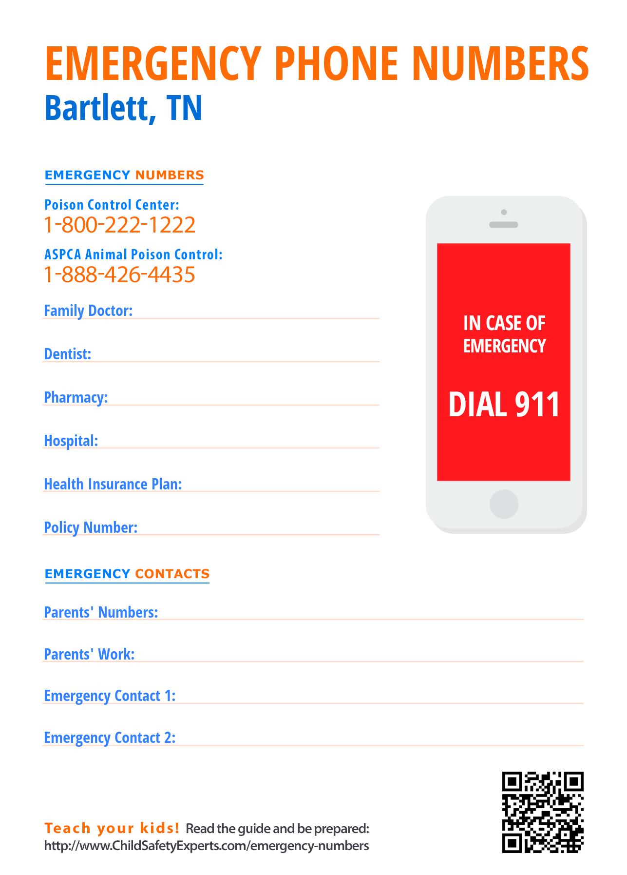 Important Emergency Numbers in Bartlett, Tennessee