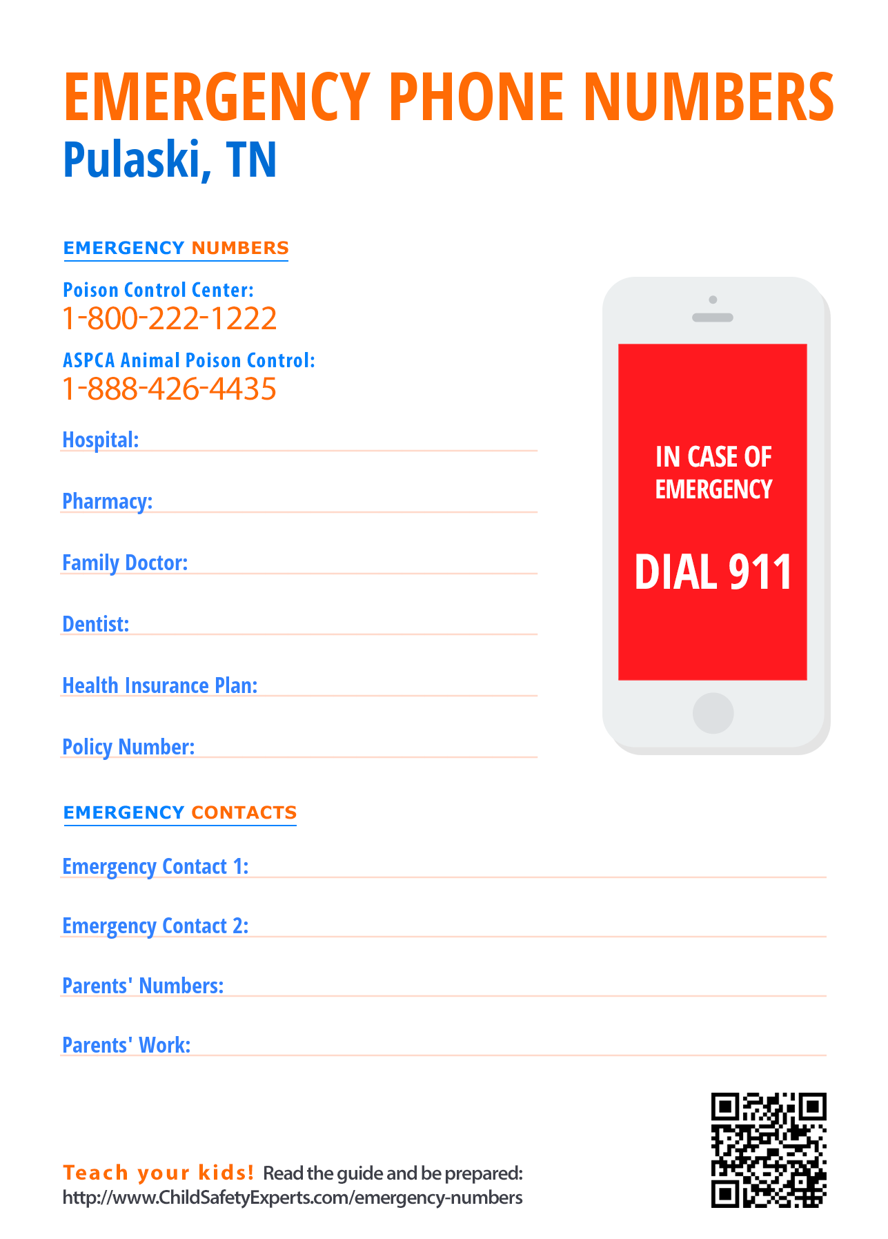 Important Emergency Numbers in Pulaski, Tennessee